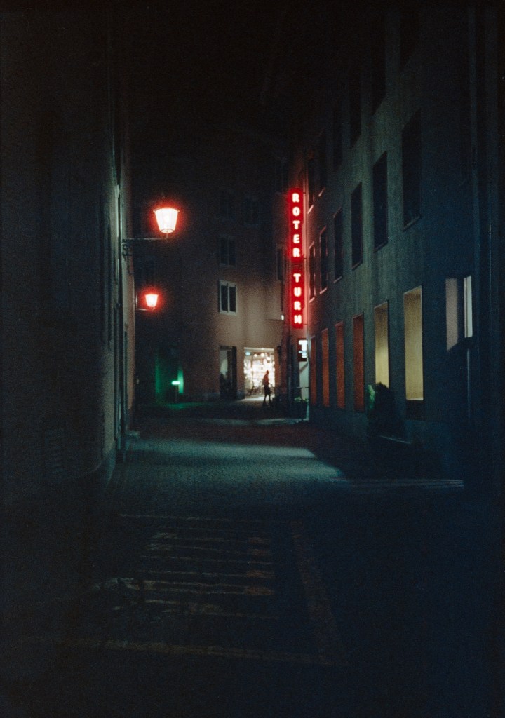 January 23, 2020January 19, 2020 Roter Turm 23/366 A dark figure roams the back streets of Baden. Armed with only a trusty old Konica SLR and a roll of Cinestill 800T film he looks for scenes such as this one, aiming to take hold of the night. Konica Autoreflex T3 on Cinestill 800T Share this: Click to share on X (Opens in new window) X Click to share on Facebook (Opens in new window) Facebook Like Loading... Related