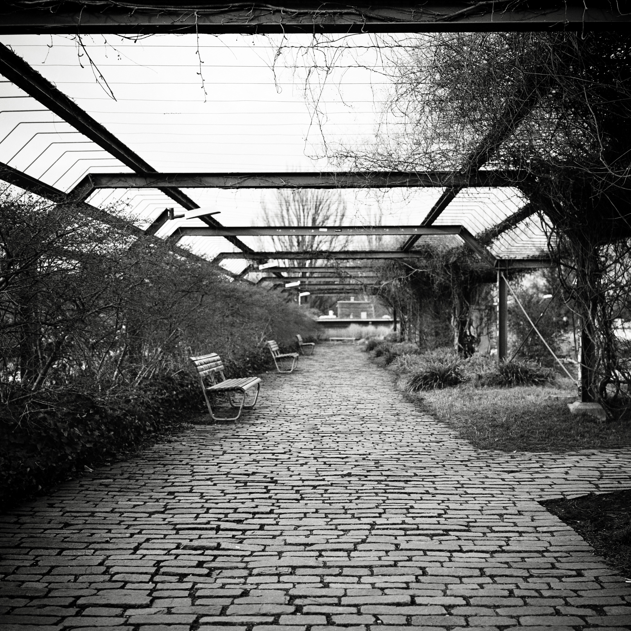 94/366 Taken before the current social distancing measures were put into place, it was perhaps a sign of things to come. The scene struck me with its emptiness and made me stop in mid-sentence to compose a photo. There is something a little eerie about places that are constructed especially for humans that are then left bereft of them.