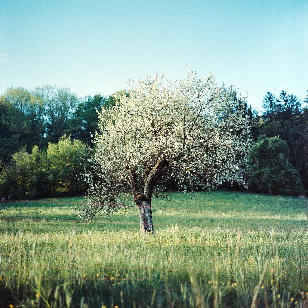 160/366 Seeing the beautiful springtime blossoms on the trees was a great reminder that nature was continuing on its way, even if we couldn’t. One fine morning I went for a short walk with a camera to try to make some images of Spring and the return of life and warmth to the land. In the spirit of the lockdown I even developed these rolls myself at home, with the new C-41 kit from Ars-Imago. It was definitely a bit of trial and error, though it went pretty well considering it was my first attempt. It certainly is a bit trickier than doing black and white development, though!