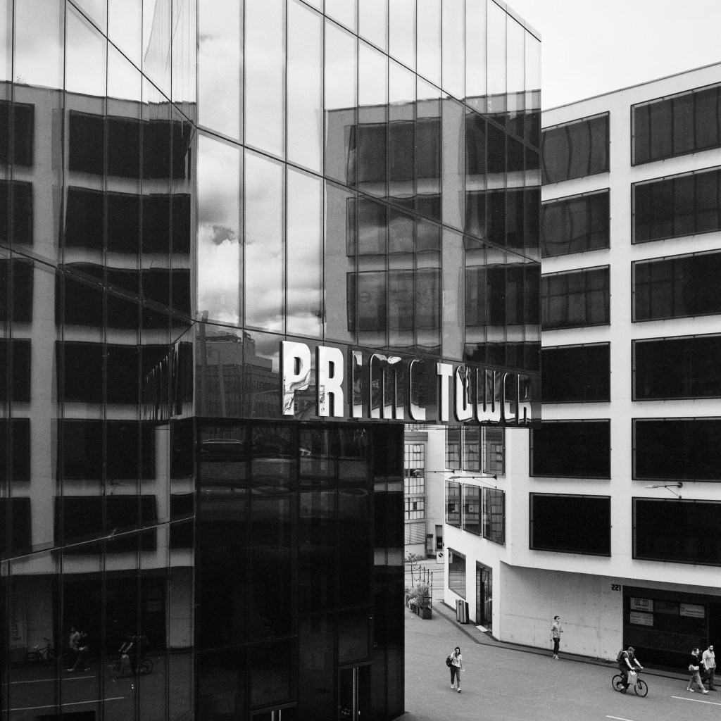 246/366 The Prime Tower in Zurich’s Westend is definitely one of the easiest city landmarks to spot. The skyscraper is built vaguely in the shape of a 1 and is a prime spot for photographers. I am drawn to it due to its mirror-like surface, which on this cloudy day reflected the soft light from the cloudy sky. If you haven’t noticed yet, well I quite like to make confusing compositions in my images and this one is no exception…