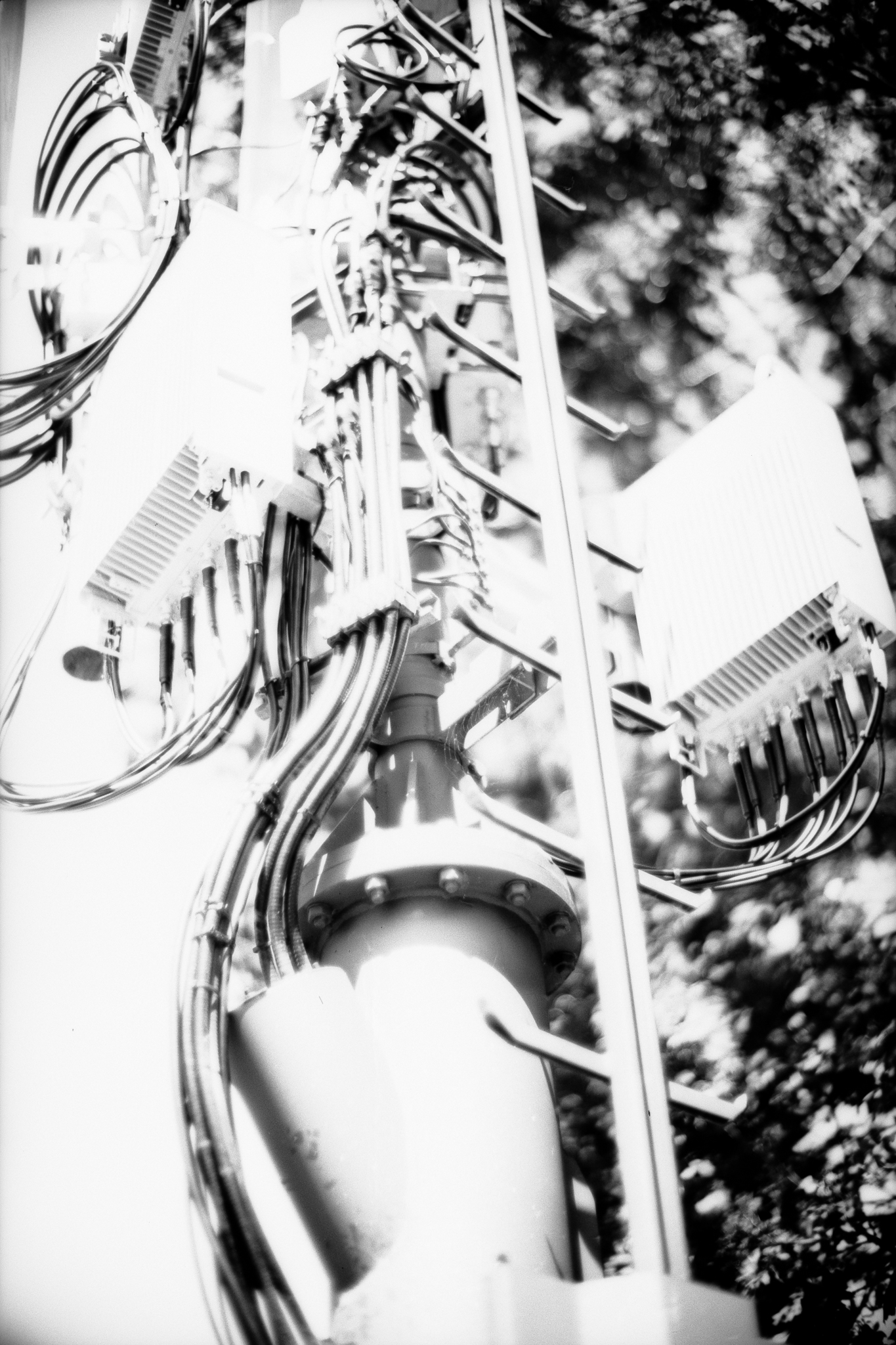 285/366 Exhausted and heading home I decided to finish off the roll by taking some photos of things that wouldn’t normally tickle my aesthetic fancy. In this case the subject was some kind of communications antenna. In real life it is rather a dull subject, but half blown out and under extreme contrast it begins to look somewhat interesting… somewhat.