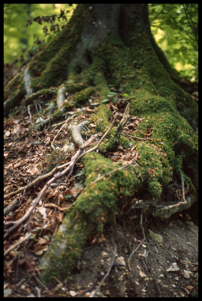 353/366 I’ve posted quite a number from images from the cold and foggy side of Autumn and now I’d like to go back and post a few more from the warm and colourful side. During these outings I travelled unencumbered with just a 35 mm camera and a few rolls of slide film, the best option to capture the beautiful colours of the forest.